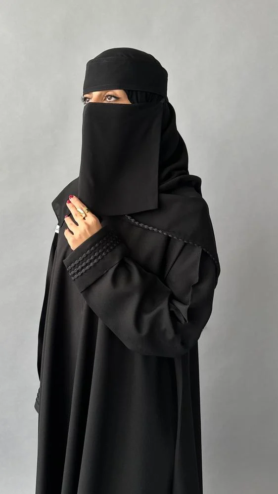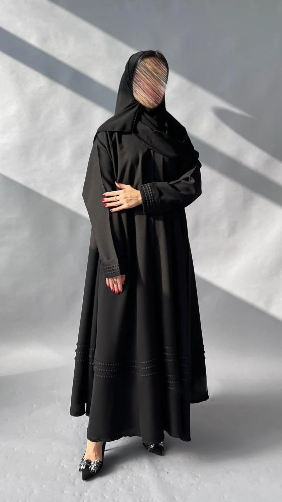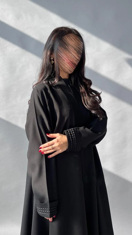 - قيطان رفيع يزين الأكمام وطول العباية بتفاصيل ناعمة وأنيقة.