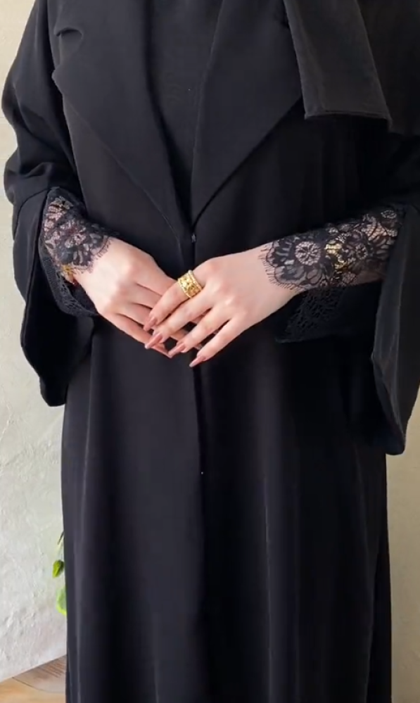 عباية حراير بتدخيلة دانتيل أسود ناعم في الأكمام ، من متجر ارام للعبايات تمنحك مزيجًا راقيًا من الفخامة والأنوثة، بتصميم يبرز جمال التفاصيل ويعكس ذوق المرأة الرفيع، تأتي هذه العباية من قماش الكريب الفاخر المعروف بملمسه الانسيابي مع أكمام دانتيل أنيقة تضيف لمسة من الرقي والجاذبية، تألقي بإطلالة مميزة تناسب مختلف المناسبات مع هذه القطعة الحصرية من متجر أرام.