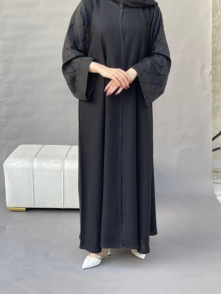 عبايه جاكار من متجر أرام ، تتميز بنقوشها الرقيقة والتفاصيل الدقيقة التي تعكس الأناقة والتميز ، مصنوعة من قماش فاخر يضفي عليها مظهراً فخماً ومعاصراً ، يتميز التصميم بأكمام مربعات تضيف لمسة من الحداثة مع الحفاظ على الطابع التقليدي ، اللون الأسود الكلاسيكي يجعلها خياراً مميزاً للعديد من المناسبات.
